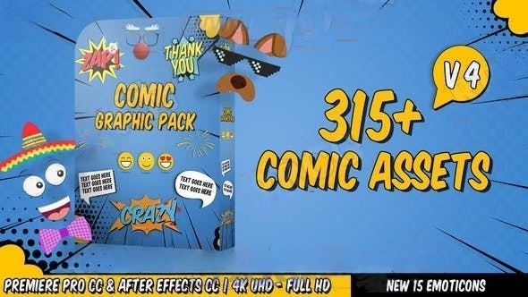 315组漫画卡通元素标题气泡框贴纸展示动画AE和Pr模板V4版